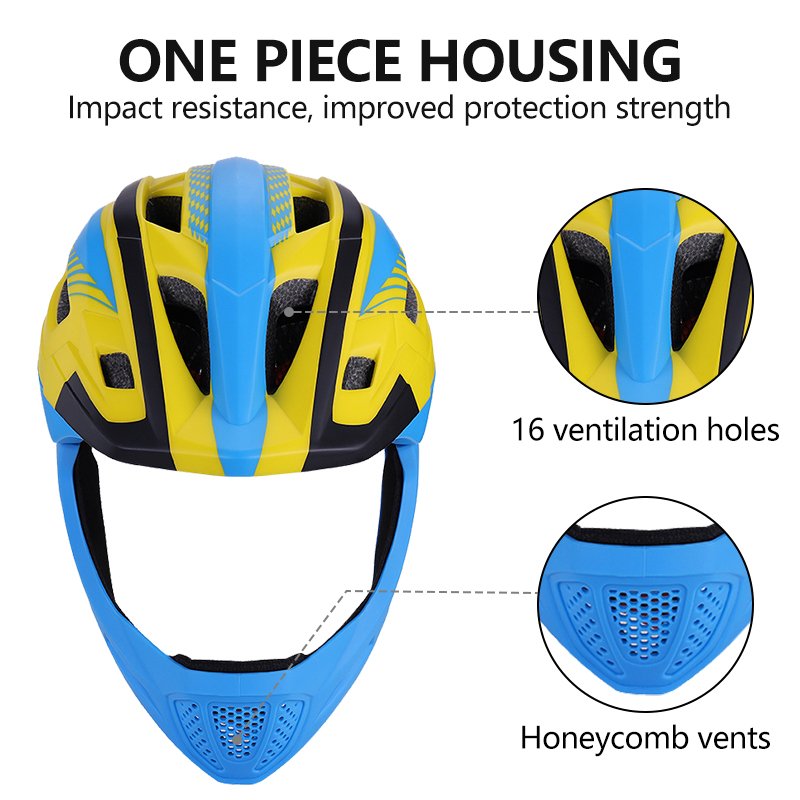 - Aerodinaminis dizainas ir 16 oro angų užtikrina puikų oro srautą, kad jūsų vaikai būtų vėsūs ir sumažintų vėjo pasipriešinimą. Ventiliuojama burnos apsauga geresniam kvėpavimui.