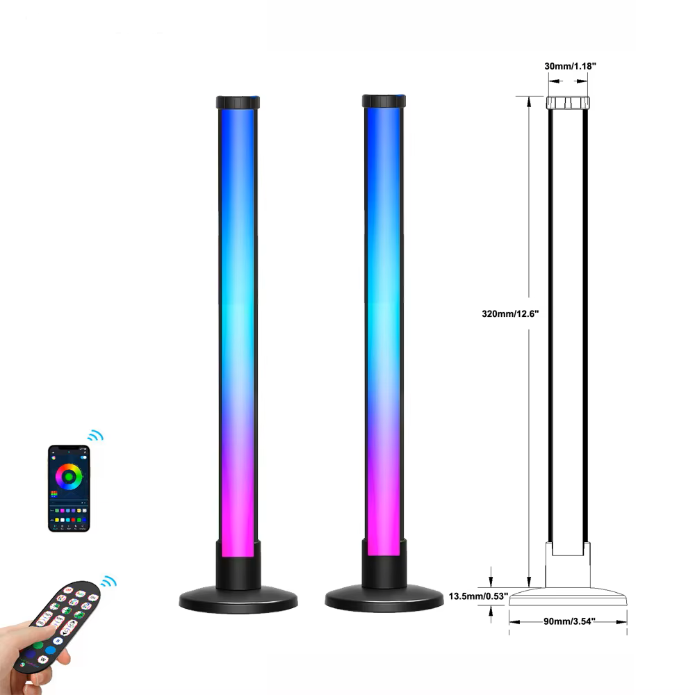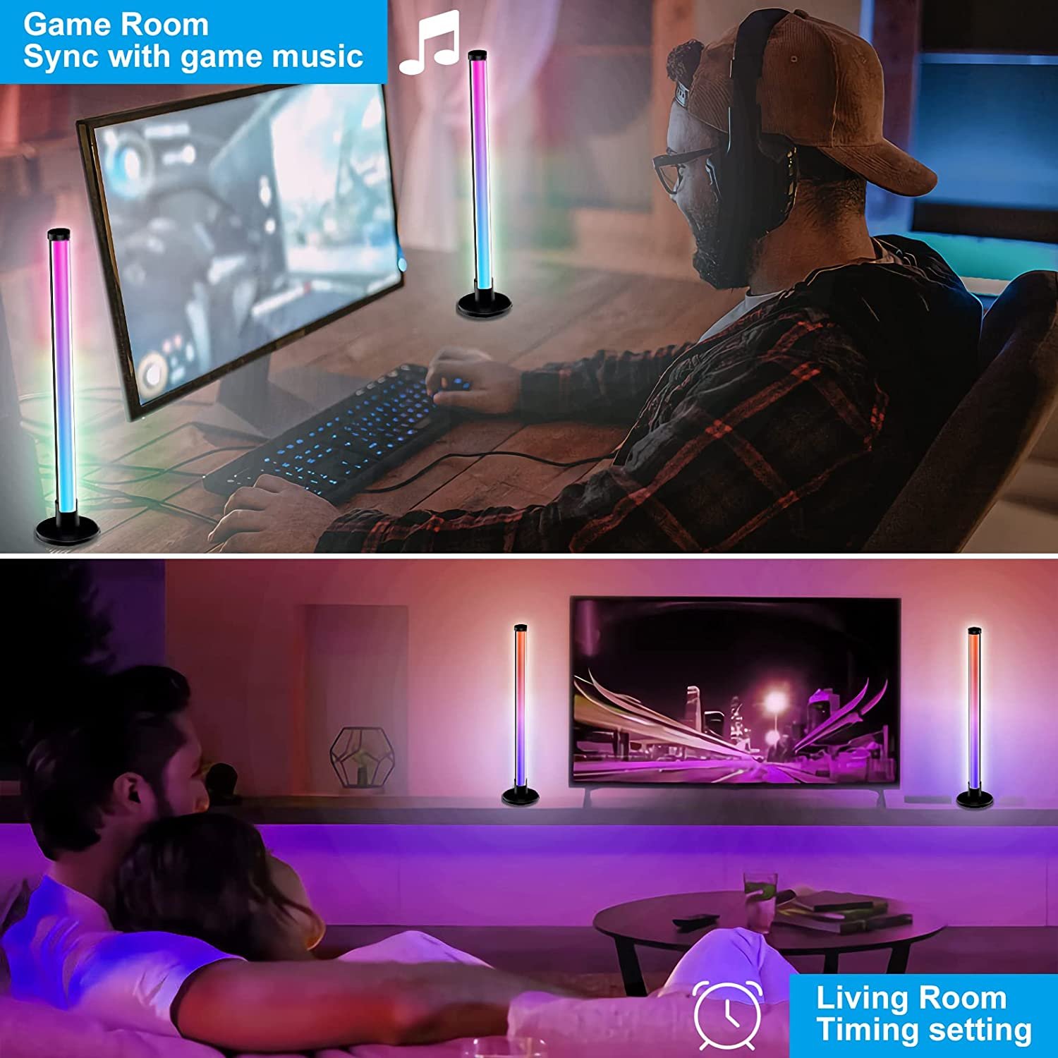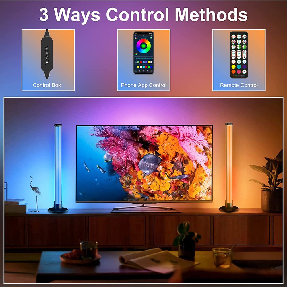 Nauji 2vnt LED RGB Pastatomas šviestuvas toršerai su šviesos efektais puikiai pagyvins Jūsų namų aplinką prie televizoriaus, kompiuterio ar kitose vietose, gali mirgėti nuo garso ar pagal užprogramuotus parametrus, turi daug funkcijų valdomi per telefoną arba pulteliu.