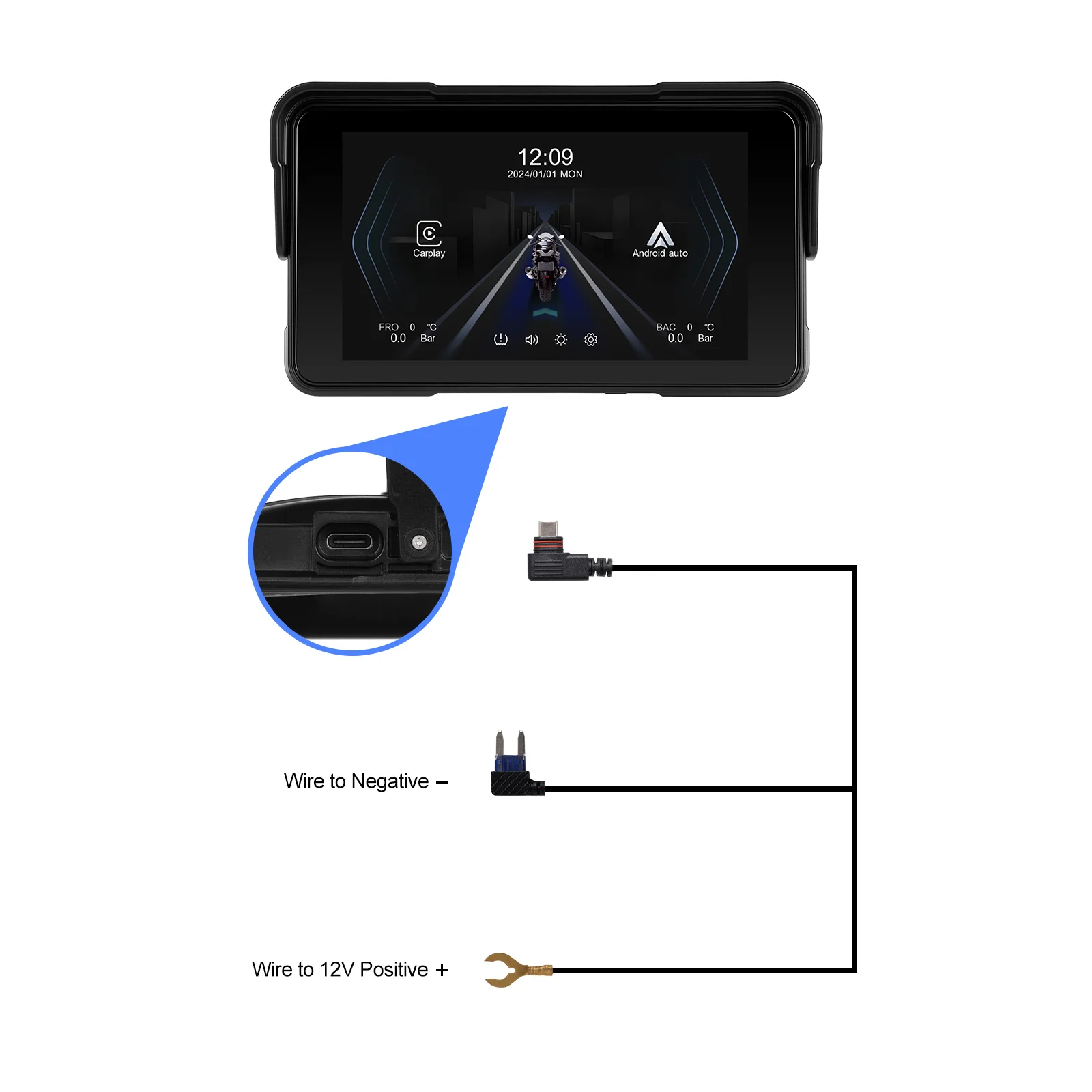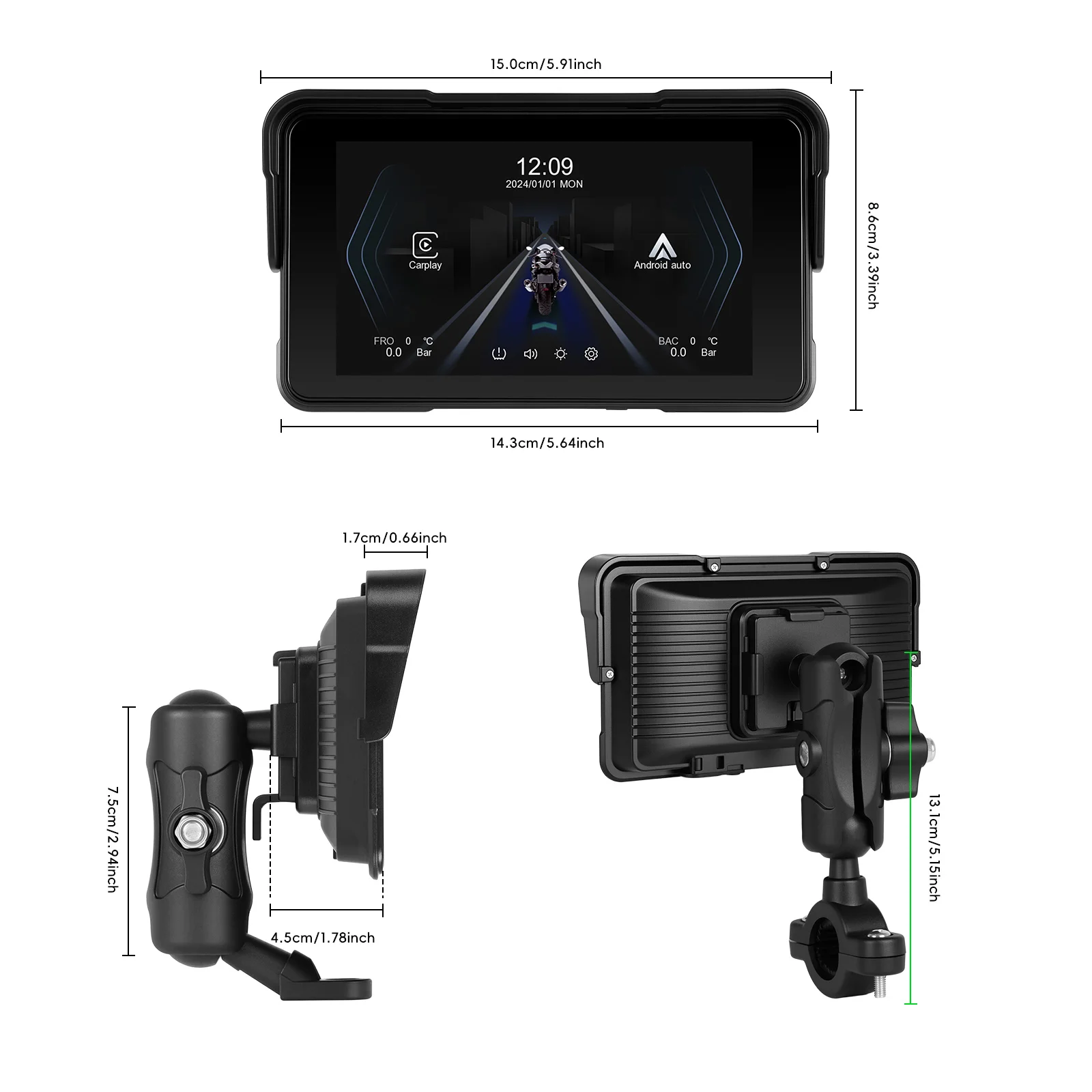 Motociklo Išmani multimedija su Carplay ir Android Auto Specifikacijos: