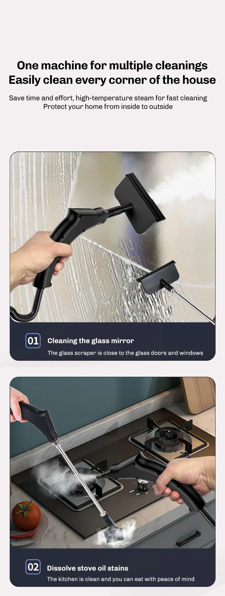 [Praktinis rankinis garų valytuvas] Su patogia rankena ir valdymu, ilgais laidais ir neslystančia rankena, patogus naudoti, geras namų valymo pagalbininkas, tenkinantis įvairius kasdienio valymo poreikius. Puikiai tinka valyti automobių varikliams, salonams.