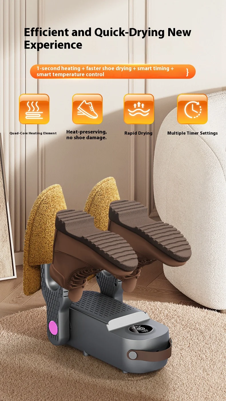 - Vietos taupymas: Kompaktiškas, sulankstomas nešiojamas batų džiovintuvas idealiai tinka mažiems butams, bendrabučiams ar kelionėms, o nenaudojant jį galima lengvai laikyti stalčiuje arba spintoje.