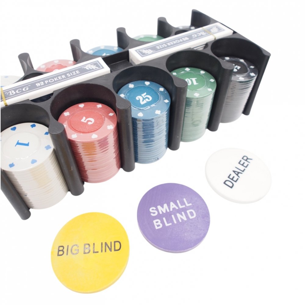 - 3 pozicijos žetonai („Dealer“, „Big Blind“, „Small Blind“)